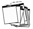 A Self-Stick variant of our flipcharts for both temporary and permanent mounting. Includes 10 detachable graph sheets. Each sheet has 4 temporary sticky strips at the top, plus a full sticky backside. Stick, Remove and Re-Stick.